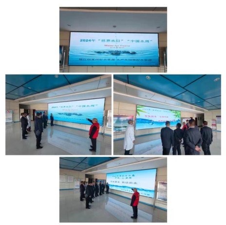 機關黨支部黨員志愿者帶領下,與會代表在忻州市節(jié)水教育基地展板前認真學習了習近平總書記關于保護水資源的系列講話精神。在忻州市節(jié)水教育基地忻州市水資源電子沙盤前了解忻州市水資源現狀,聽取了志愿者講解“節(jié)水優(yōu)先、空間均衡、系統治理、兩手發(fā)力”的治水思路和全省“三縱九橫、八河連通”水網體系建設成果。在水質檢測大樓門廳大顯示屏前聽取了志愿者講解2024年“世界水日?中國水周”宣傳標語深刻內涵和節(jié)水常識。